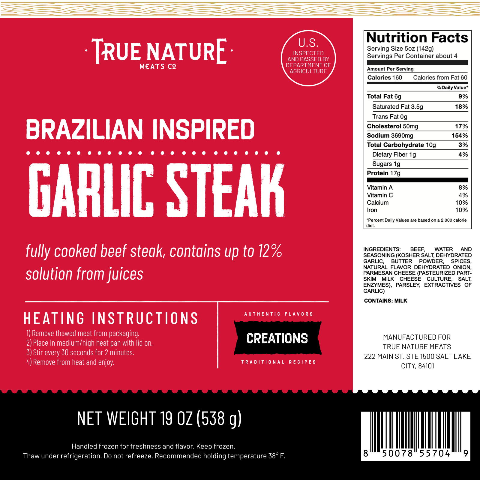 Experience the bold flavors of Brazil with our aromatic garlic steak. Premium beef is seasoned with fresh garlic, sea salt, and Brazilian herbs, then grilled to create tender, flavorful slices bursting with savory garlic goodness. This traditional preparation celebrates the simple yet intense flavors of Brazilian cuisine.