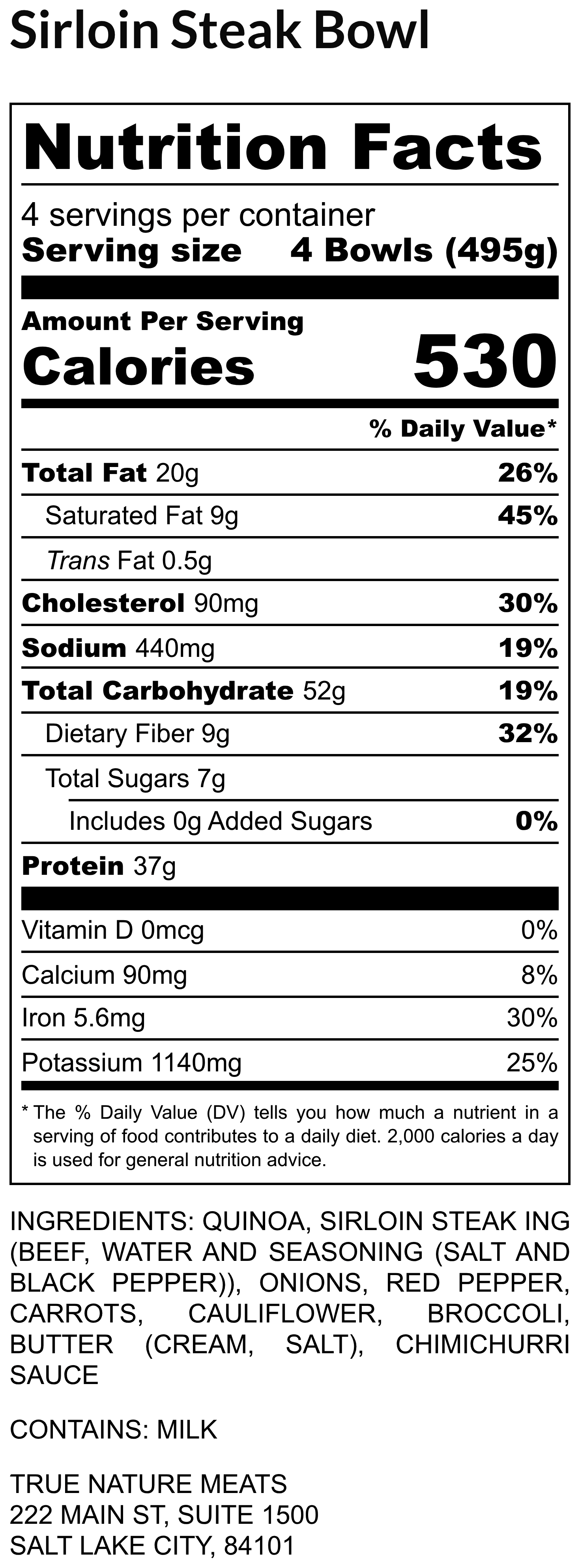 This Sirloin Steak Bowl is fresh, vibrant, and full of hearty flavor. Tender sirloin steak is served over fluffy quinoa with a colorful mix of broccoli, cauliflower, carrots, peppers, and onions—then finished with a rich pat of butter and a zesty drizzle of chimichurri. It’s a wholesome, satisfying bowl that brings bold flavor and feel-good fuel together.